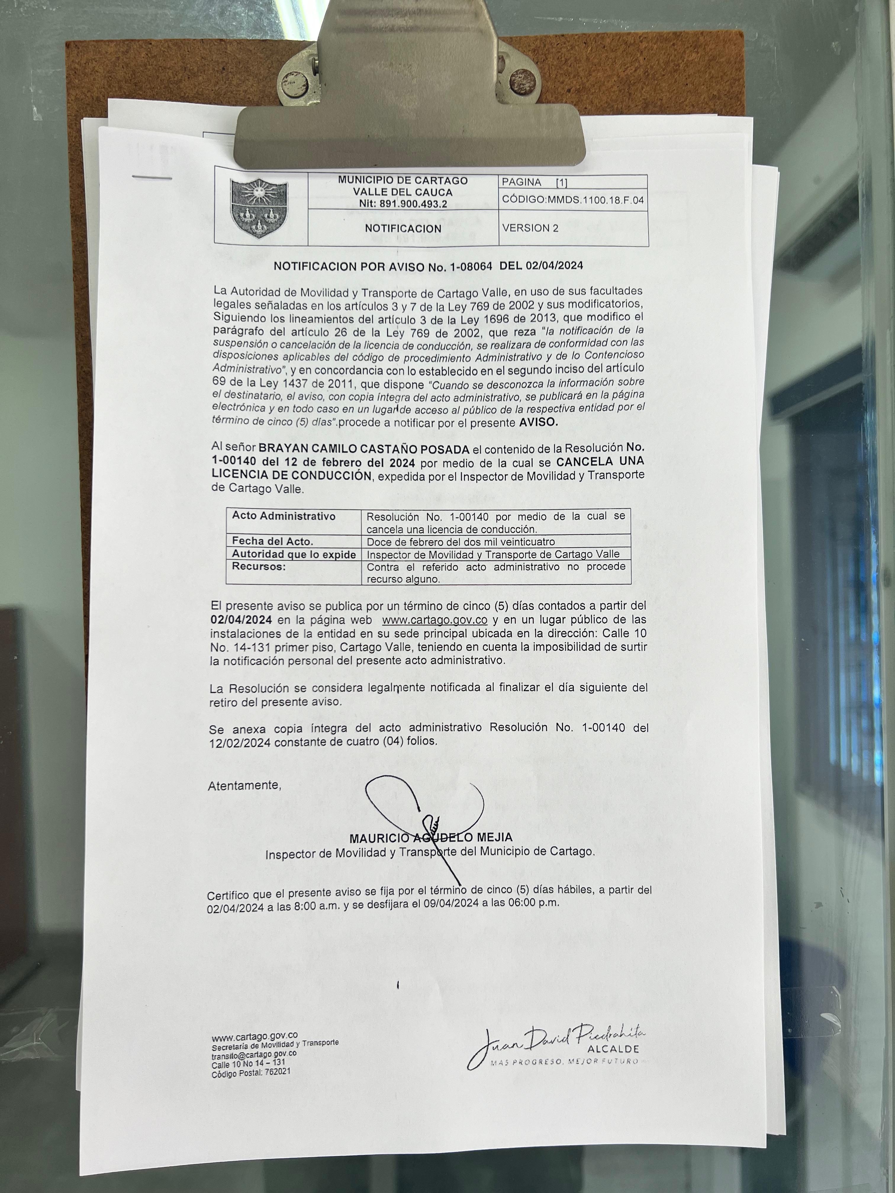RESOLUCION No. 1-08059 DEL 01 DE ABRIL DEL 2024 QUE ORDENA LA NOTIFICACION POR AVISO