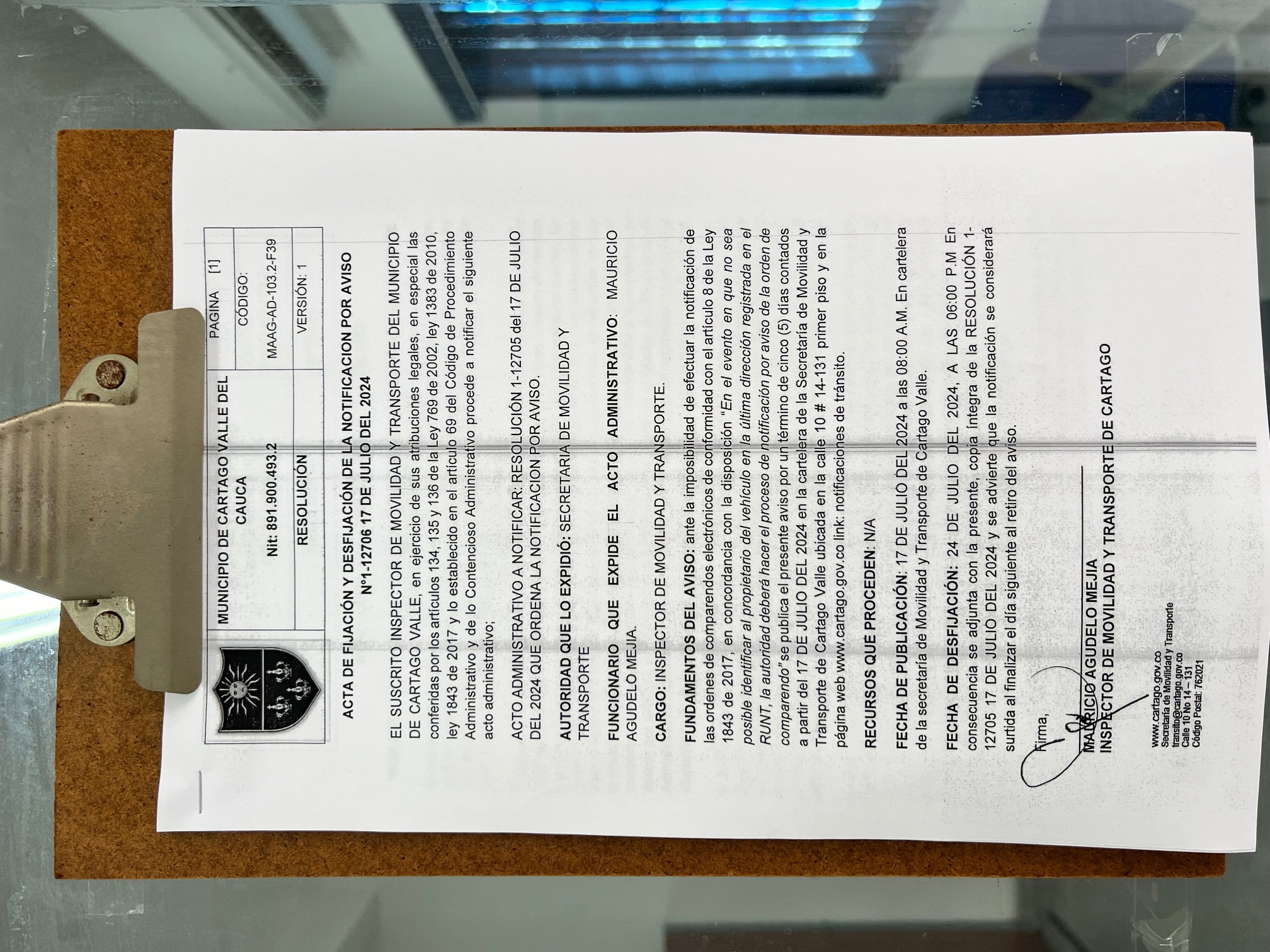 RESOLUCION No. 1-12705 DEL 17 DE JULIO DEL 2024 QUE ORDENA LA NOTIFICACION POR AVISO