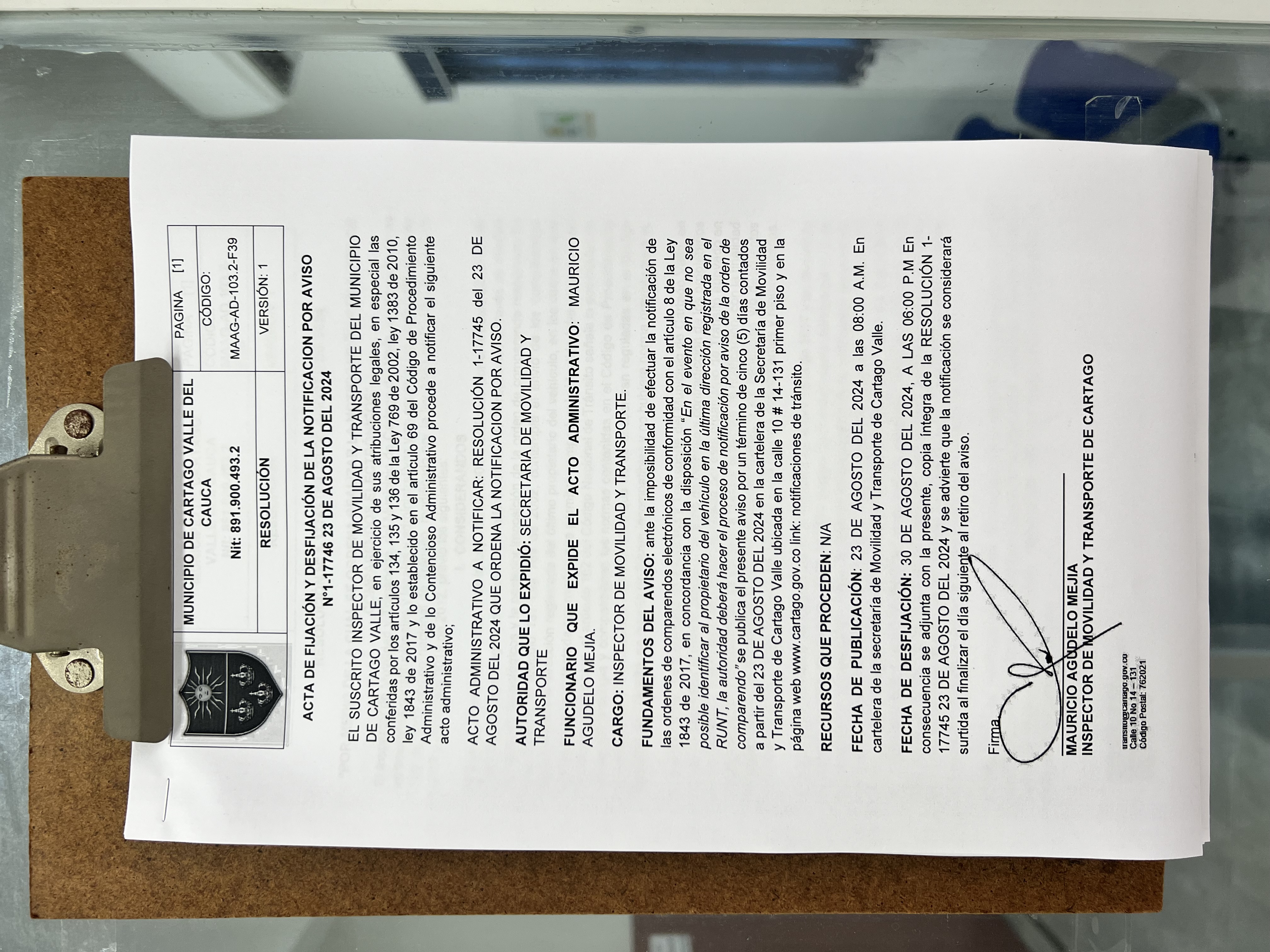 RESOLUCION No. 1-17745 DEL 23 DE AGOSTO DEL 2024 QUE ORDENA LA NOTIFICACION POR AVISO