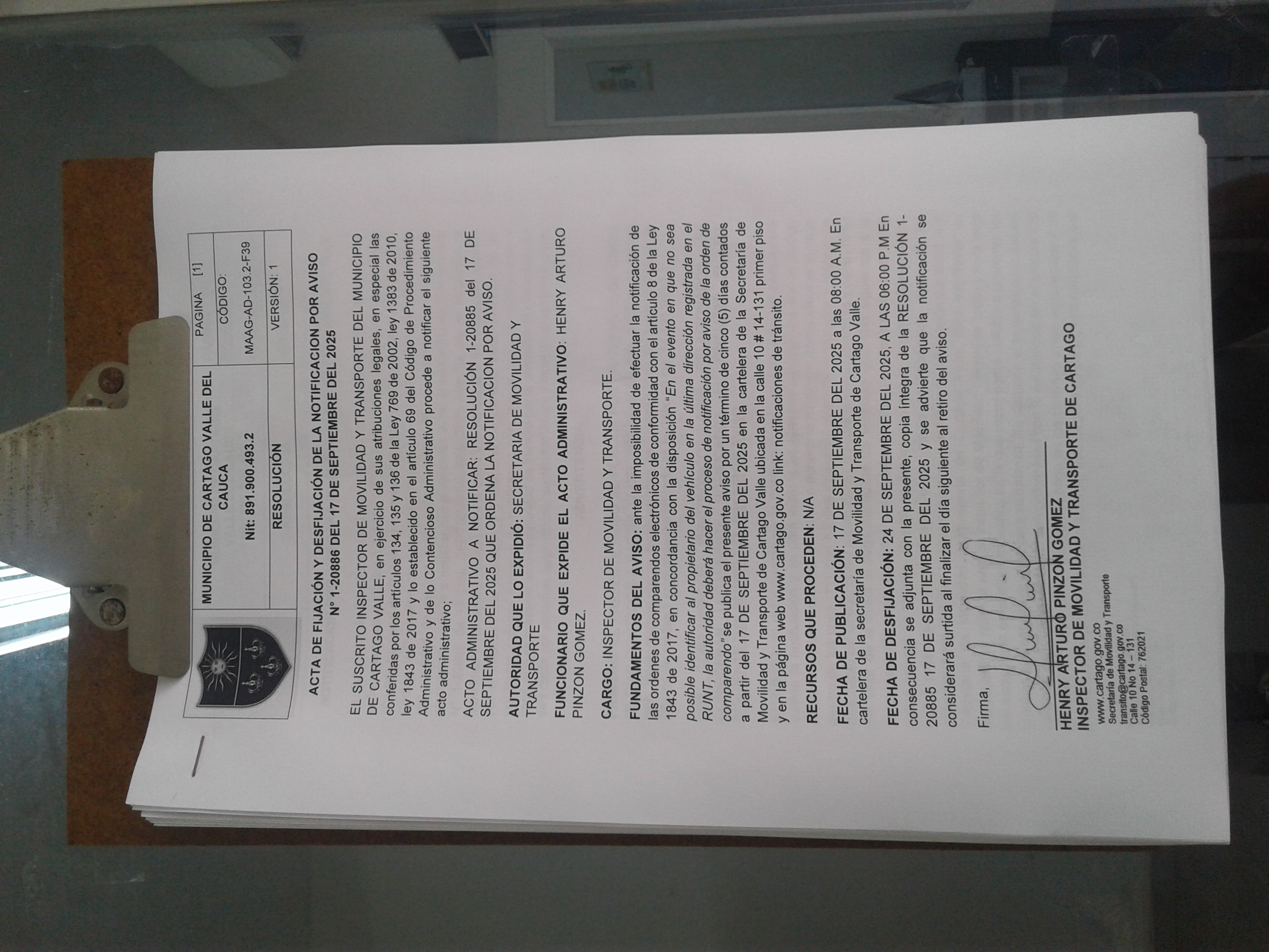 RESOLUCION No. 1-20885 DEL 17 DE SEPTIEMBRE DEL 2025 QUE ORDENA LA NOTIFICACION POR AVISO