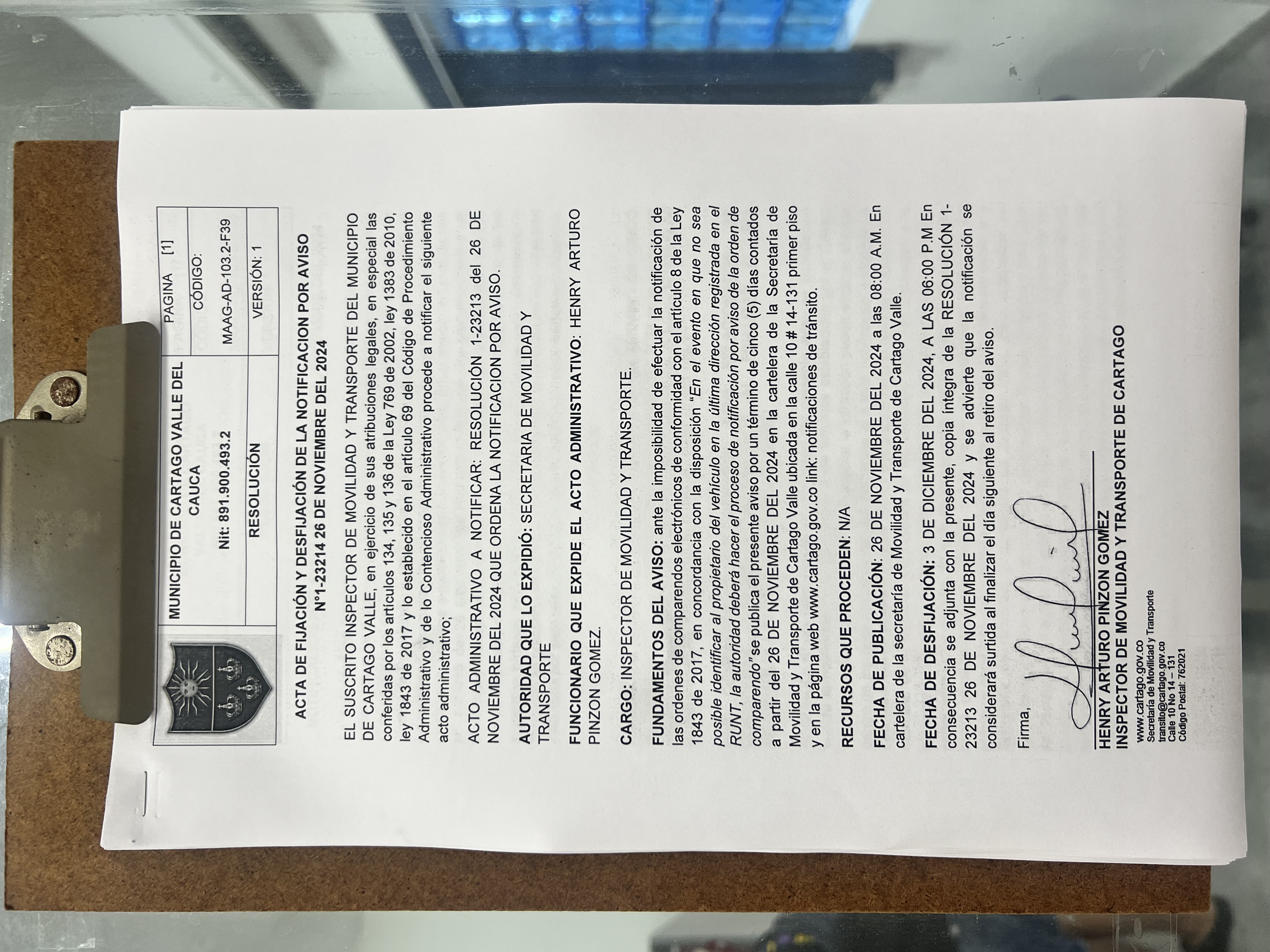RESOLUCION No. 1-23213 DEL 26 DE NOVIEMBRE DEL 2024 QUE ORDENA LA NOTIFICACION POR AVISO