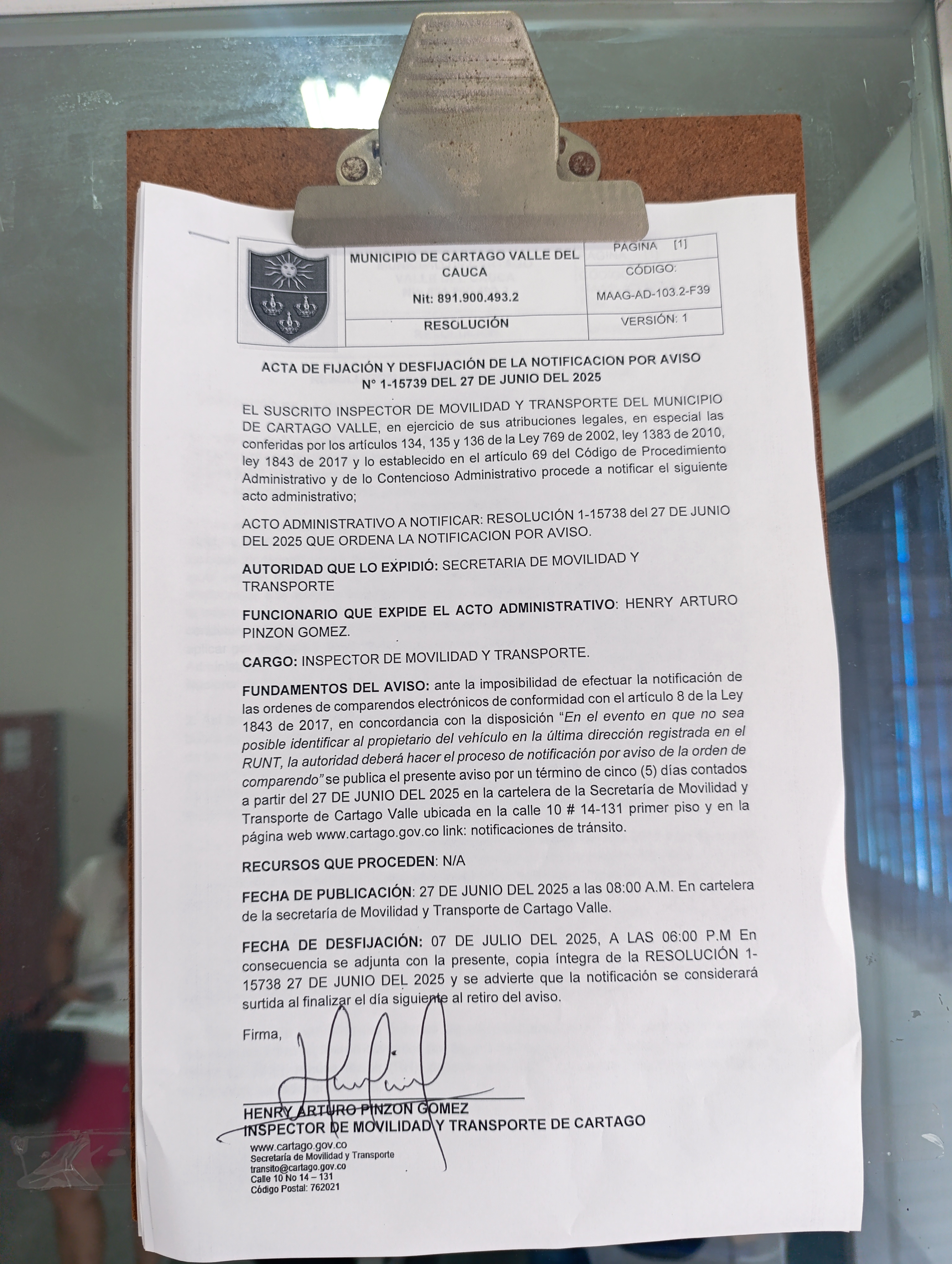 RESOLUCION No. 1-15738 DEL 27 DE JUNIO DEL 2025 QUE ORDENA LA NOTIFICACION POR AVISO