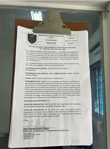 RESOLUCION No. 1-18491 DEL 28 DE JULIO DEL 2025 QUE ORDENA LA NOTIFICACION POR AVISO
