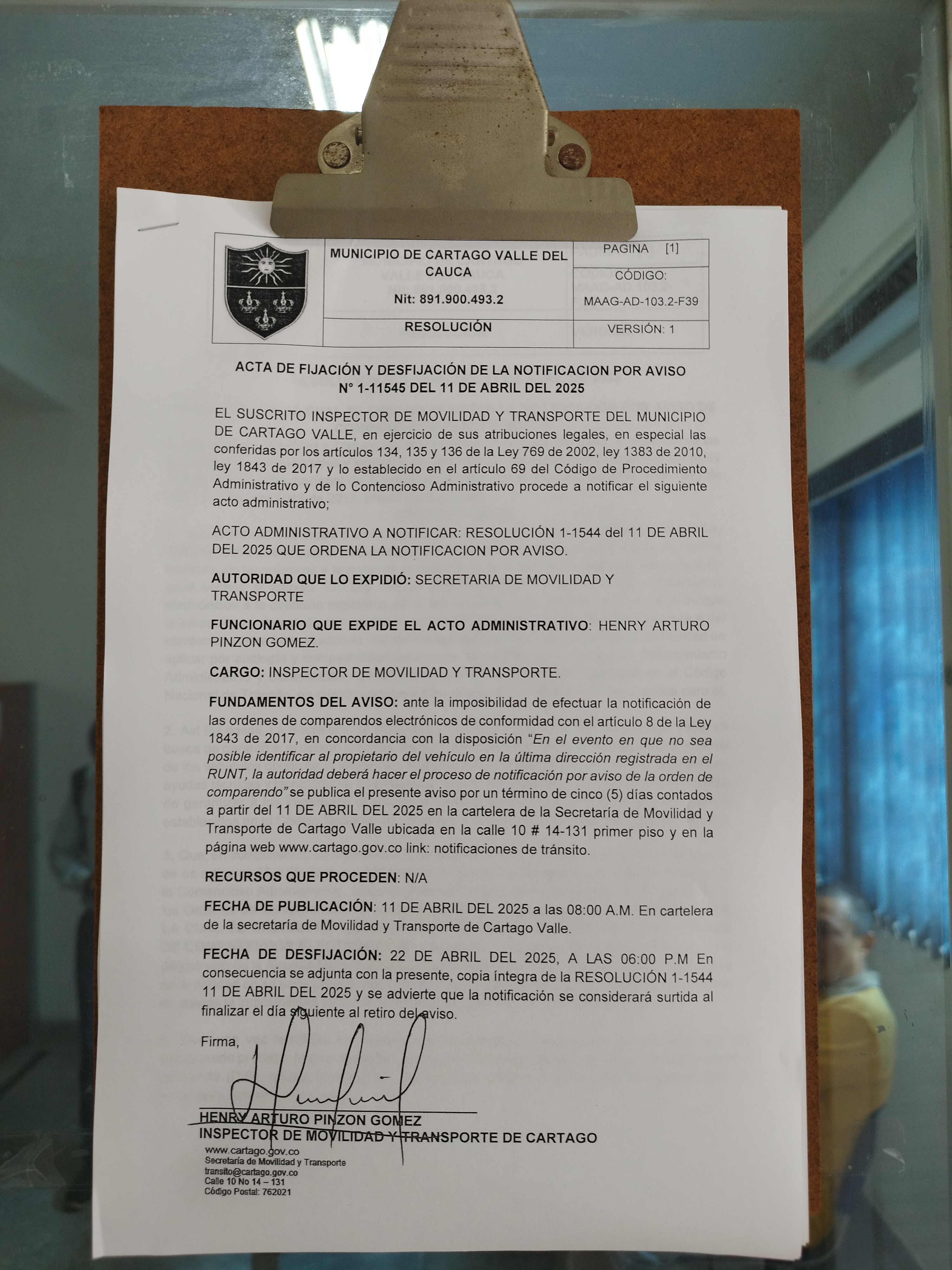 NOTIFICACION POR AVISO MANDAMIENTO DE PAGO N° 1-08471