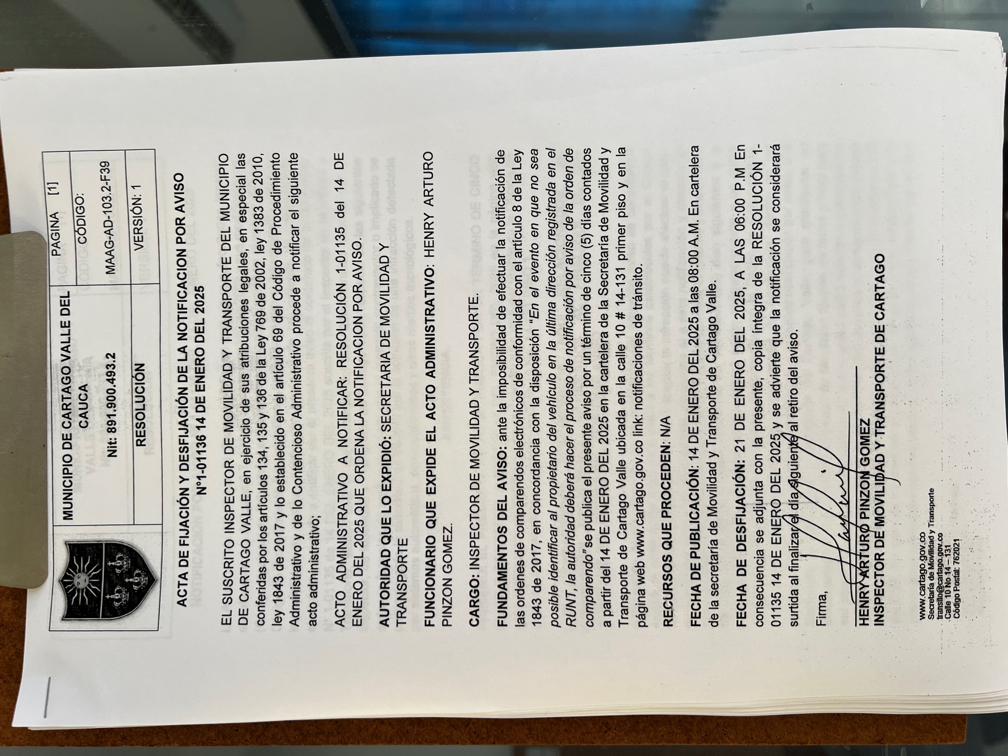 RESOLUCION No. 1-01135 DEL 14 DE ENERO DEL 2025 QUE ORDENA LA NOTIFICACION POR AVISO