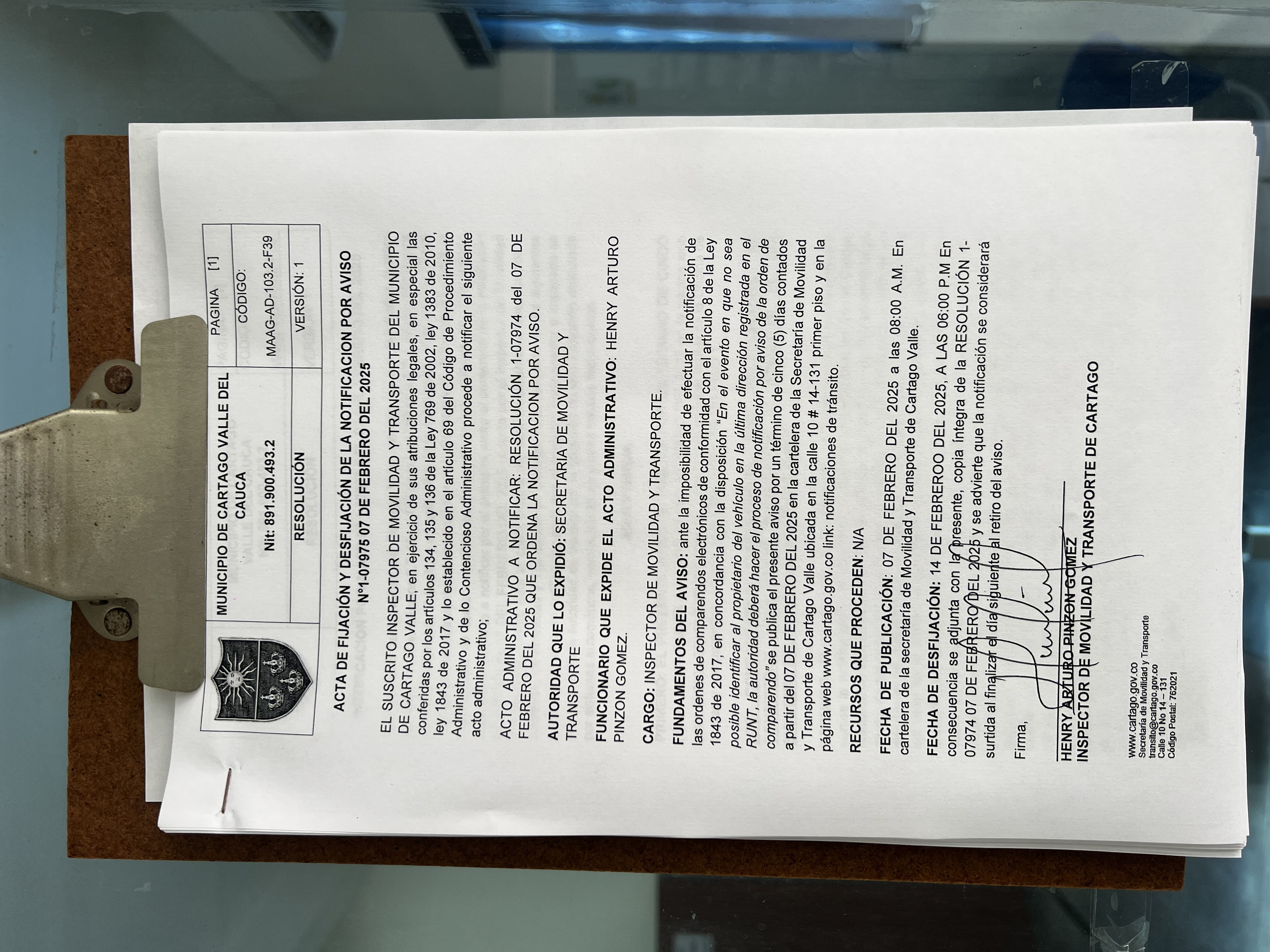 RESOLUCION No. 1-07974 DEL 07 DE FEBRERO DEL 2025 QUE ORDENA LA NOTIFICACION POR AVISO