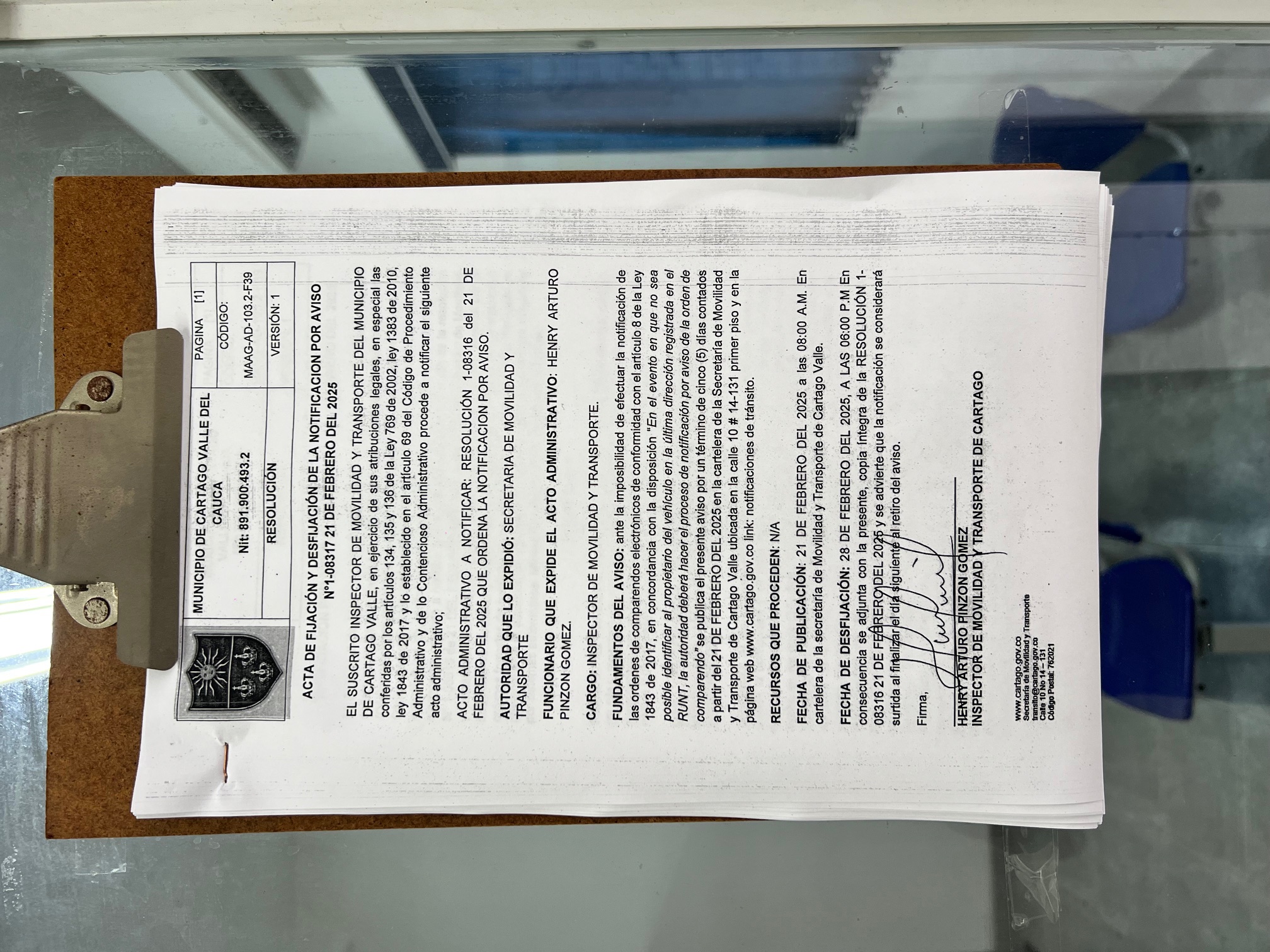 RESOLUCION No. 1-08316 DEL 21 DE FEBRERO DEL 2025 QUE ORDENA LA NOTIFICACION POR AVISO