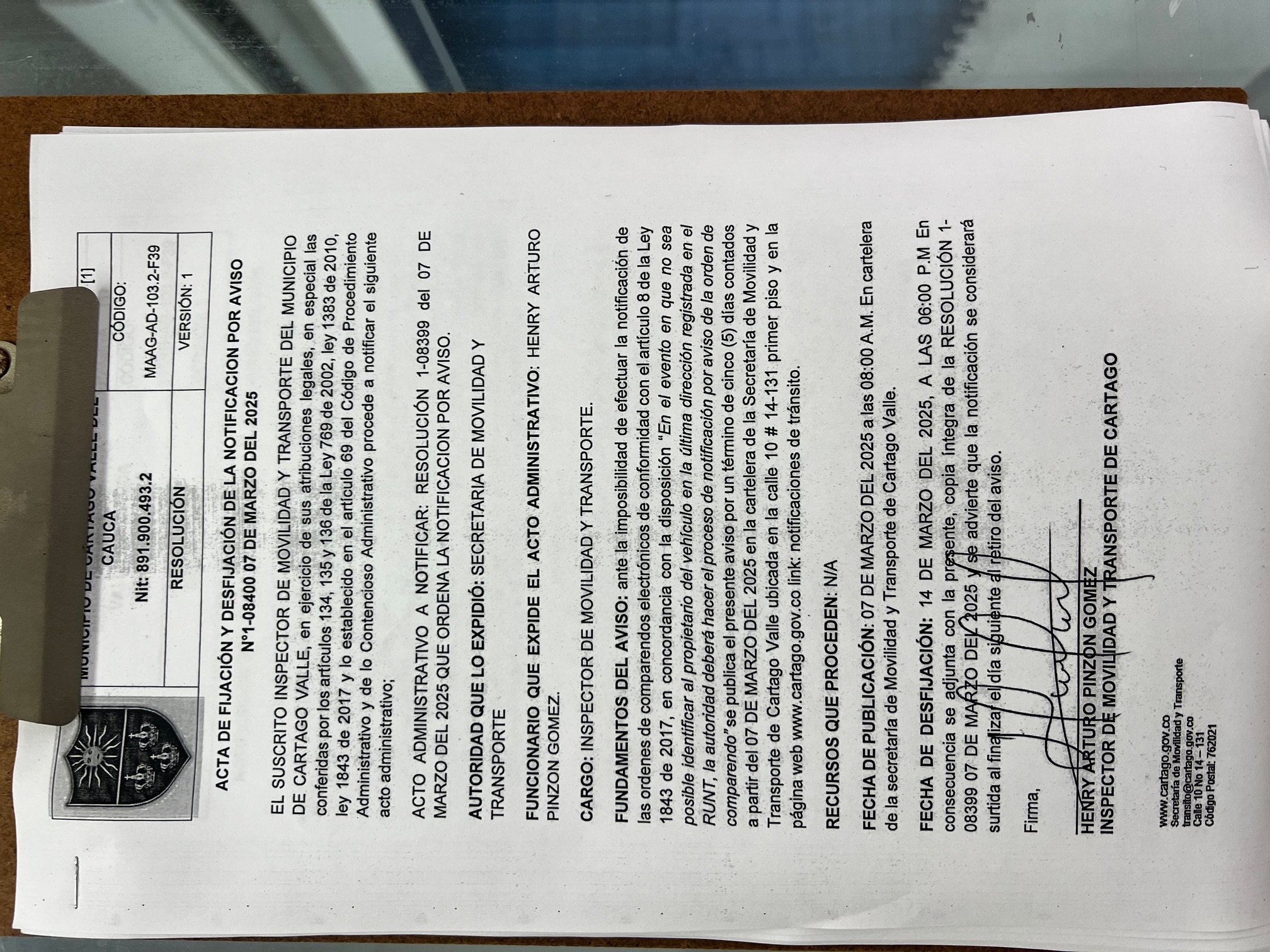 RESOLUCION No. 1-08399 DEL 07 DE MARZO DEL 2025 QUE ORDENA LA NOTIFICACION POR AVISO