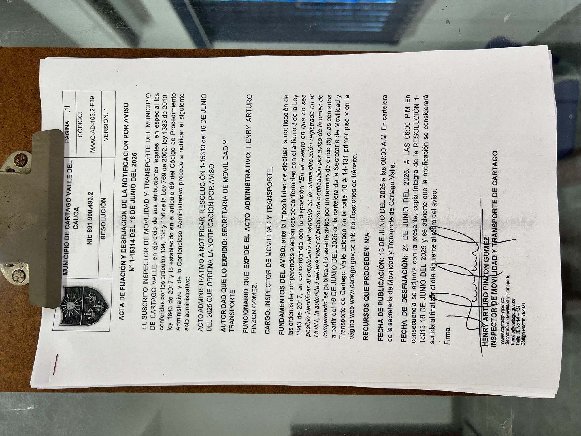 RESOLUCION No. 1-15313 DEL 16 DE JUNIO DEL 2025 QUE ORDENA LA NOTIFICACION POR AVISO
