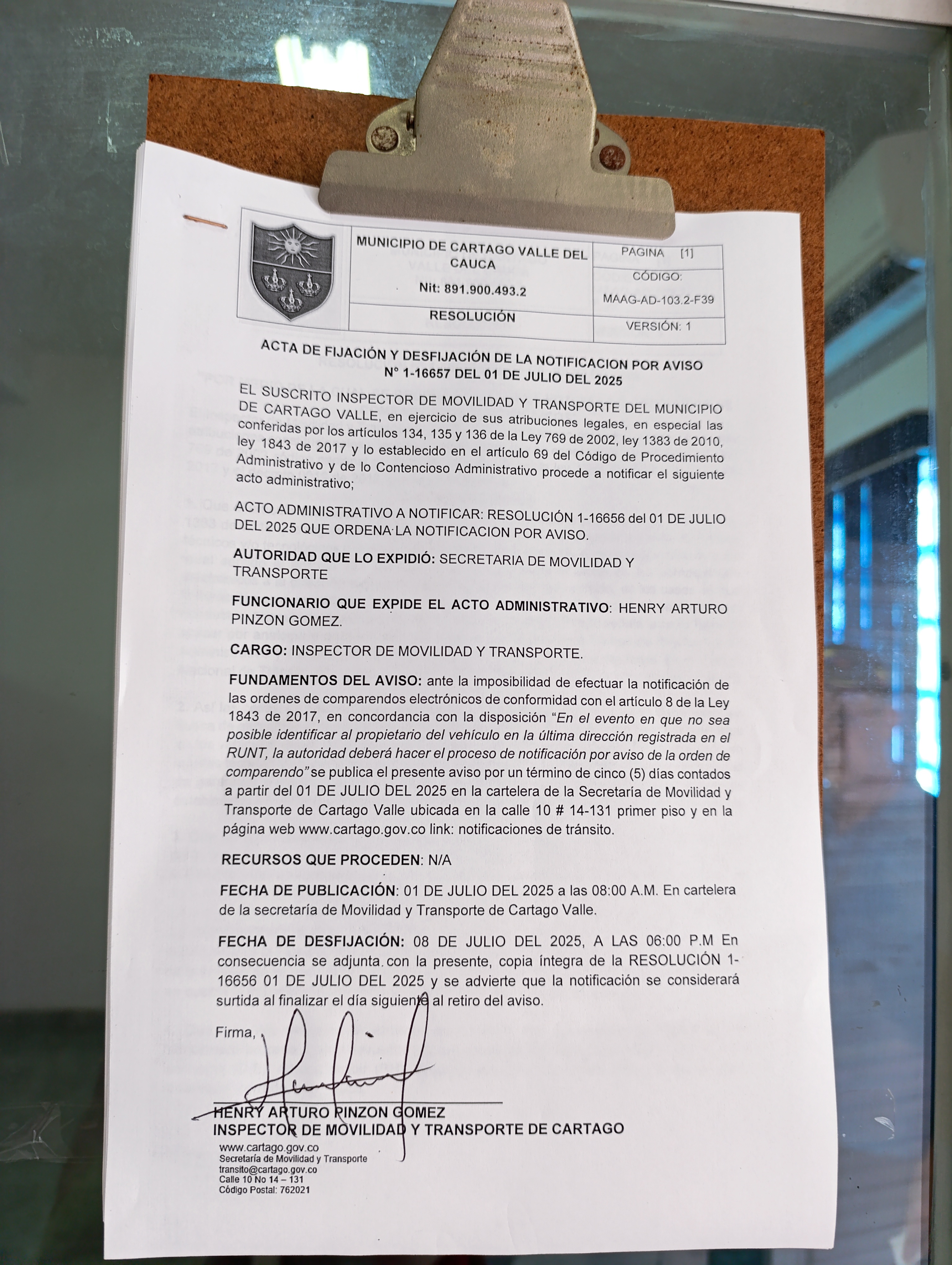 RESOLUCION No. 1-16656 DEL 01 DE JULIO DEL 2025 QUE ORDENA LA NOTIFICACION POR AVISO