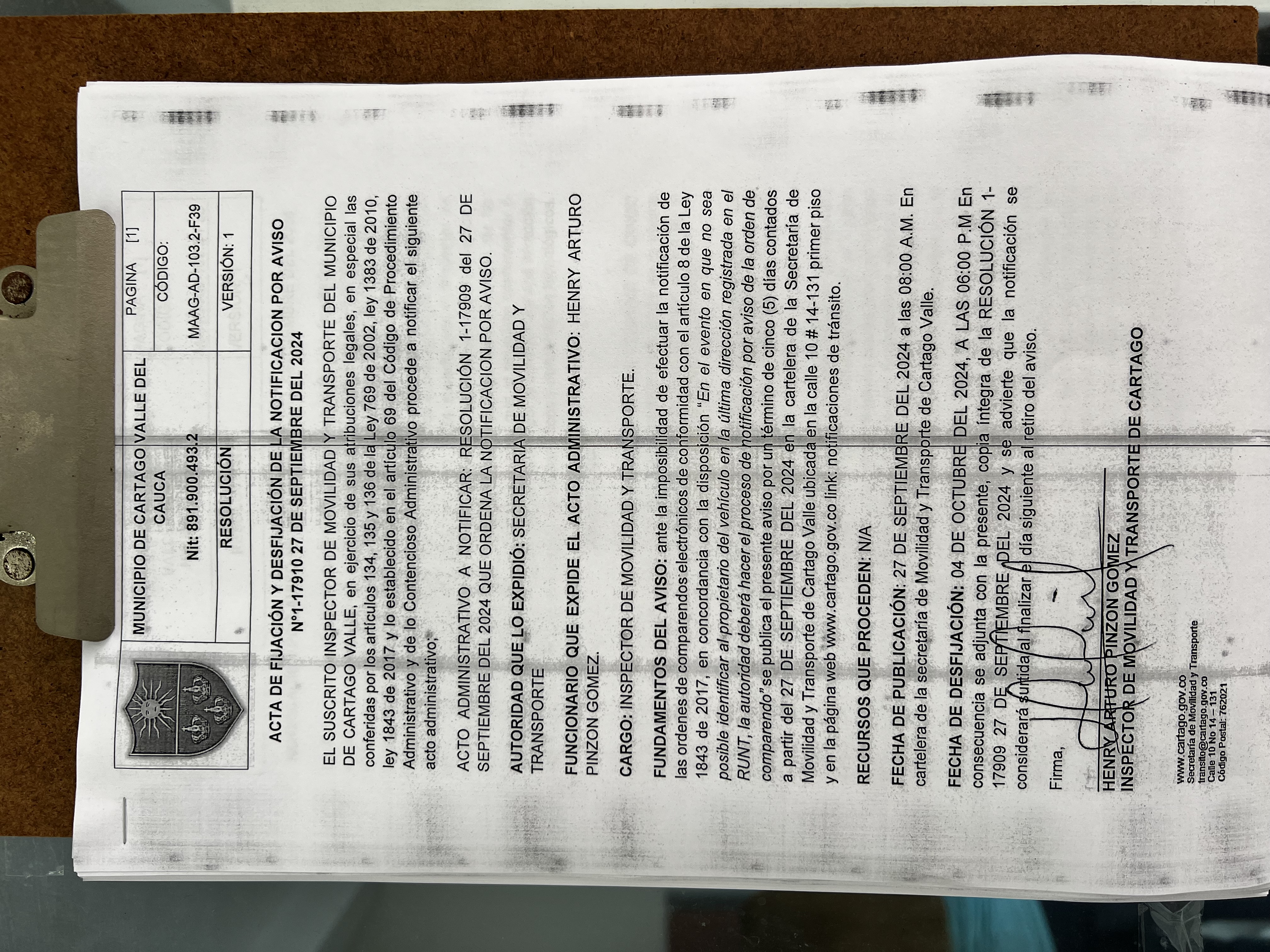 RESOLUCION No. 1-17909 DEL 27 DE SEPTIEMBRE DEL 2024 QUE ORDENA LA NOTIFICACION POR AVISO