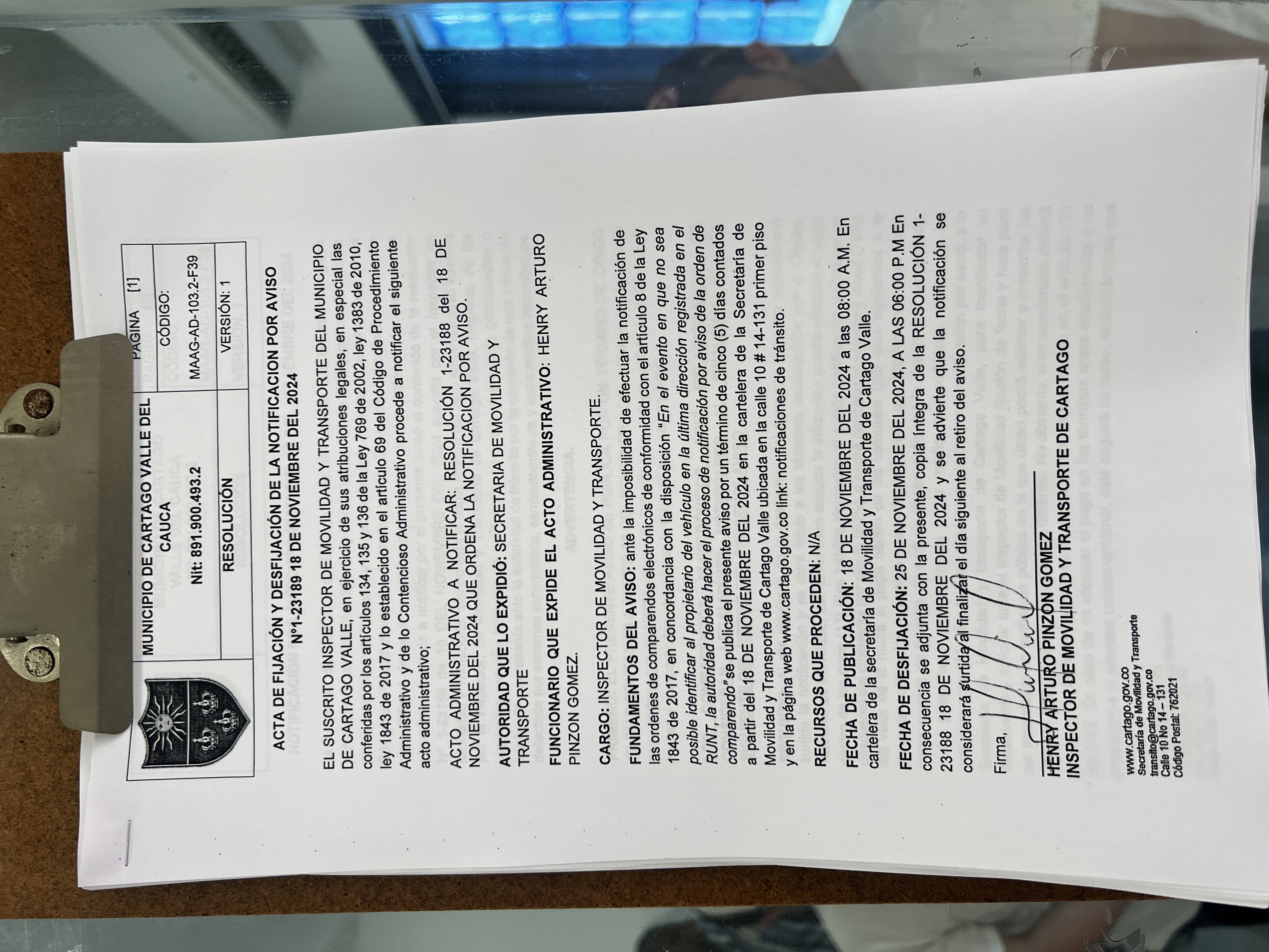 RESOLUCION No. 1-23188 DEL 18 DE NOVIEMBRE DEL 2024 QUE ORDENA LA NOTIFICACION POR AVISO