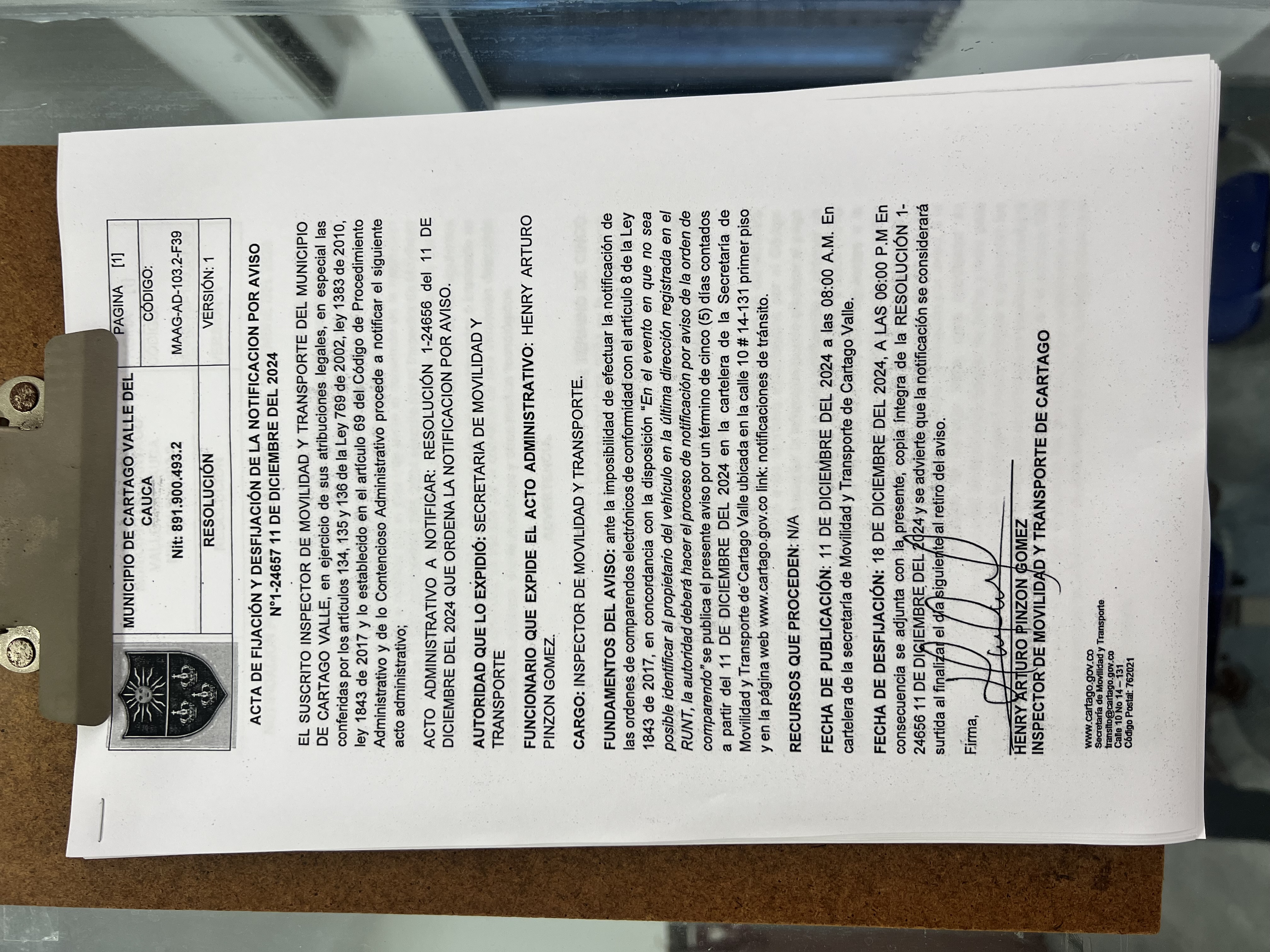 RESOLUCION No. 1-24656 DEL 11 DE DICIEMBRE DEL 2024 QUE ORDENA LA NOTIFICACION POR AVISO